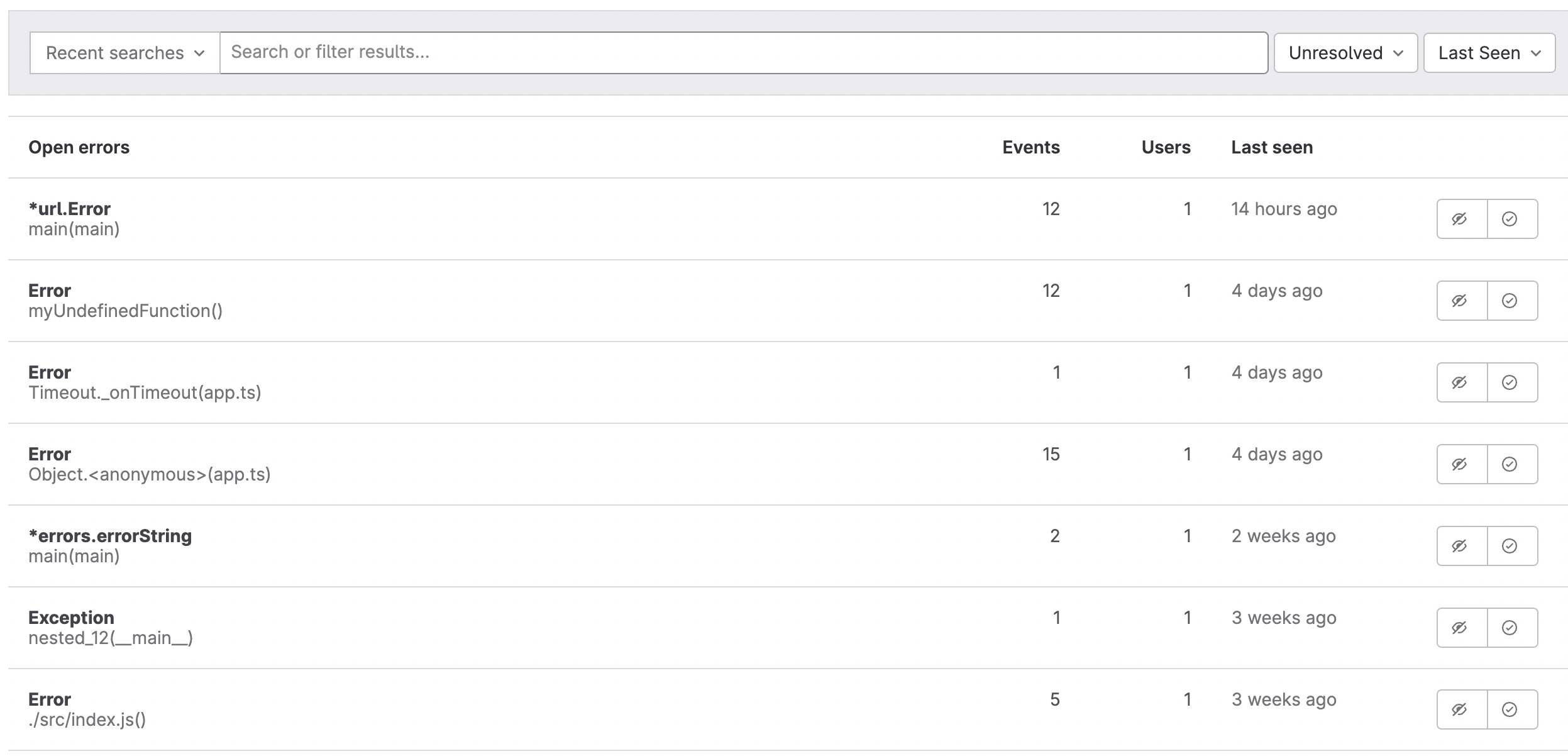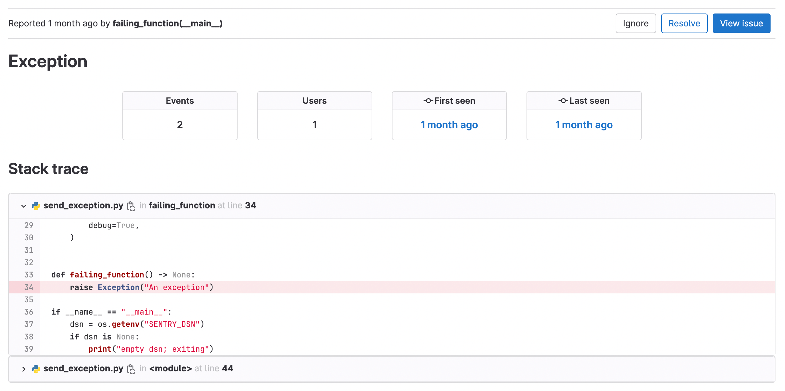 After your application emits errors to the Error Tracking API through the Sentry SDK, those errors are available in the GitLab UI. To view them: